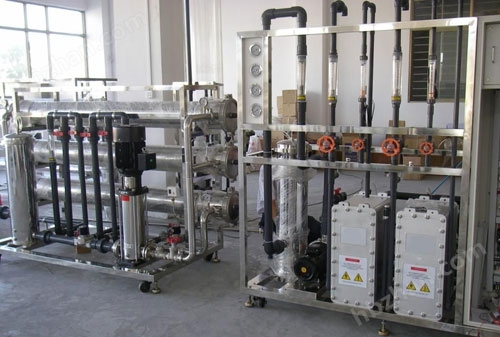 (1)隔膜的間距可以減少,通常ED的隔膜間距為0.8-1.0mm,而電去離子為3mm左右,如果填充離子交換纖維則可以使隔膜介于二者之間,這樣有利于縮短離 反滲透加電去離子裝置純水處理系統(tǒng)