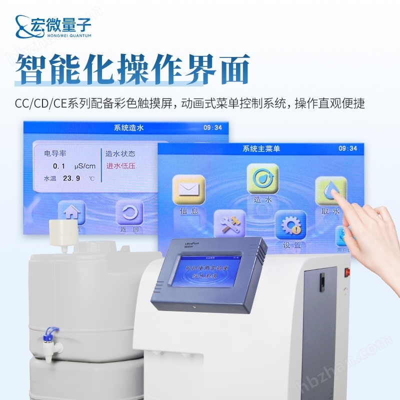 1.超純水儀采用7英寸超大彩色觸摸屏,動(dòng)畫式菜單控制系統(tǒng).