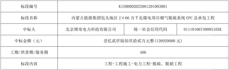 國(guó)能云南公司開遠(yuǎn)小龍?zhí)栋l(fā)電廠四期擴(kuò)建工程脫硫及脫硫廢水零排放、脫硝系統(tǒng)EPC項(xiàng)目公開招標(biāo)中標(biāo)候選人公示。第一中標(biāo)候選人:國(guó)能龍?jiān)喘h(huán)保有限公司,投標(biāo)報(bào)價(jià):15600萬元。2億!媽灣電廠升級(jí)改造項(xiàng)目海水脫硫EPC招標(biāo)