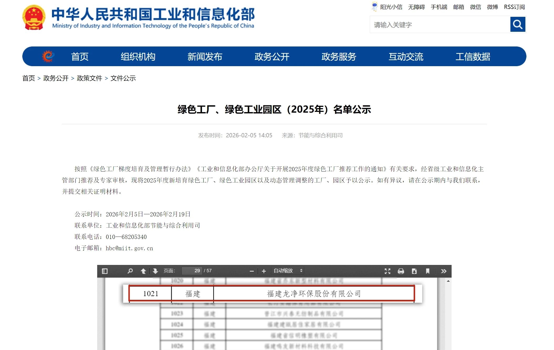 綠色工廠、綠色工業(yè)園區(qū)(2025年)名單近日公示,包括綠色工廠2038個、綠色工業(yè)園區(qū)128個。深化合作!剛果(金)水力資源與電力部部長率代表團到訪龍凈環(huán)保