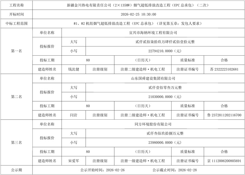 河南晉開化工投資控股集團(tuán)有限責(zé)任公司燃煤鍋爐超低排放改造總承包(EPC)工程中標(biāo)候選人公示。香山紅葉集團(tuán)有限公司、山西省安裝集團(tuán)股份有限公司聯(lián)合體中標(biāo),投標(biāo)報(bào)價(jià):3443萬元。凡本站注明“來源:環(huán)保在線”的所有作品,均為浙江興旺寶明通網(wǎng)絡(luò)有限公司-環(huán)保在線合法擁有版權(quán)或有權(quán)使用的作品,未經(jīng)本站授權(quán)不得轉(zhuǎn)載、摘編或利用其它方式使用上述作品。已經(jīng)本網(wǎng)授權(quán)使用作品的,應(yīng)在授權(quán)范圍內(nèi)使用,并注明“來源:環(huán)保在線”。違反上述聲明者,本站將追究其相關(guān)法律責(zé)任。