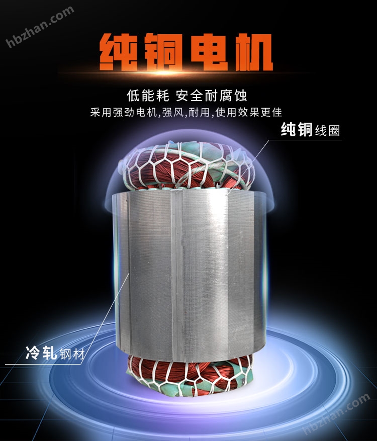 第三,風機選用寬頻寬壓高性能電機,達到穩(wěn)定工作,更好達到風機壓力大,風力大,效率高。